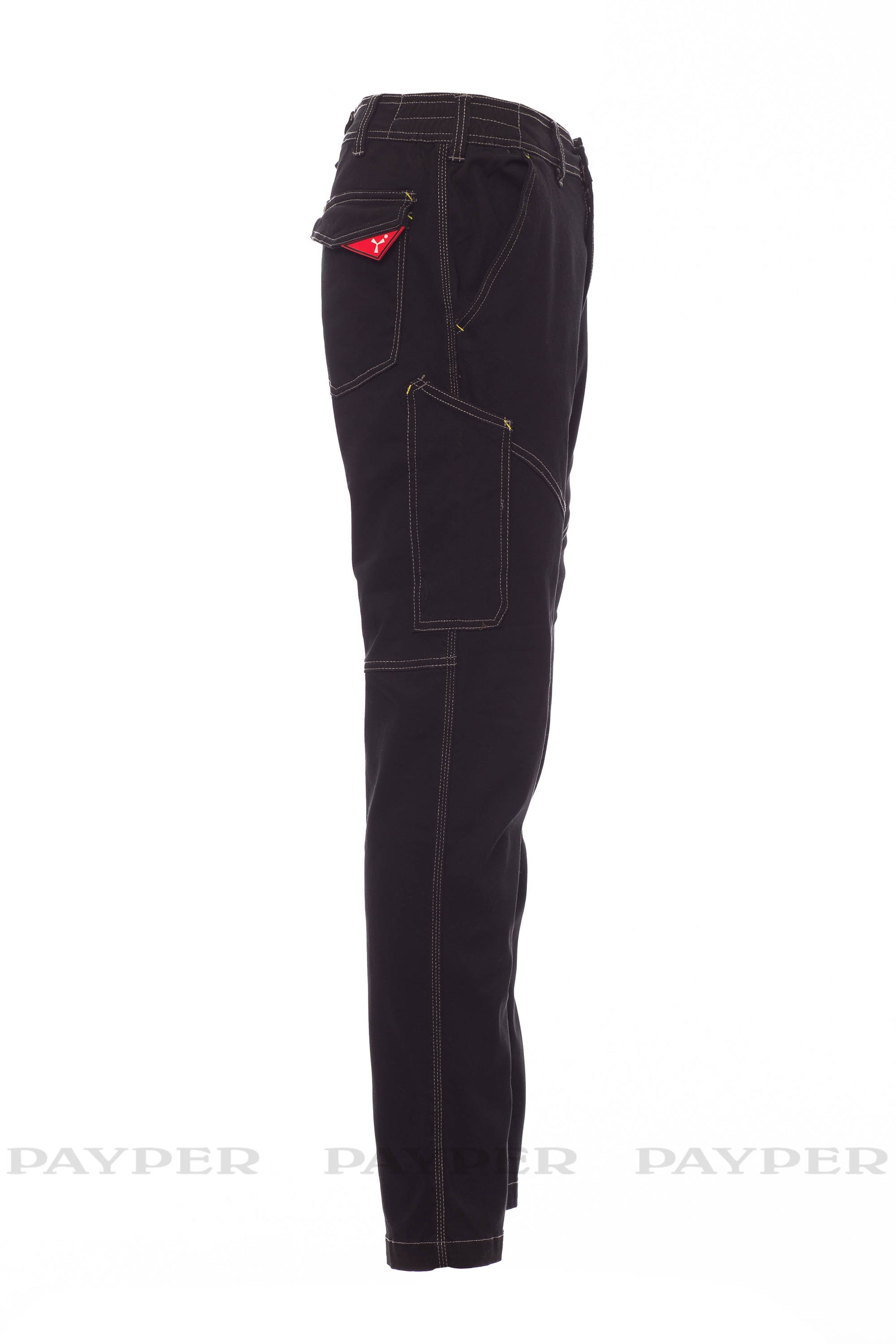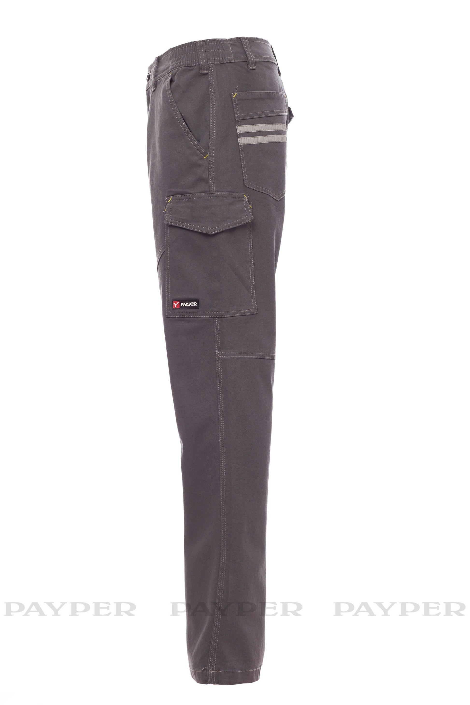 Ganzjährig tragbare Unisex-Stretchhose, seitlich dehnbarer Bund und Gürtelschlaufen, Hosenschlitz mit Reißverschluss und Knopf aus Kunststoff, 2 klassisch geschnittene Vordertaschen, 1 Seitentasche mit LOCK SYSTEM, 1 Zollstocktasche, 1 offene Gesäßtasche und 1 mit Patte und Klettverschluss, Dreifachnähte im Schritt und an der Beininnenseite. Einsätze und Nähte in Kontrastfarbe, Reflexstreifen auf der Gesäßtasche, Dreifachnähte. Nietknopf bei Ausführung in Weiß.