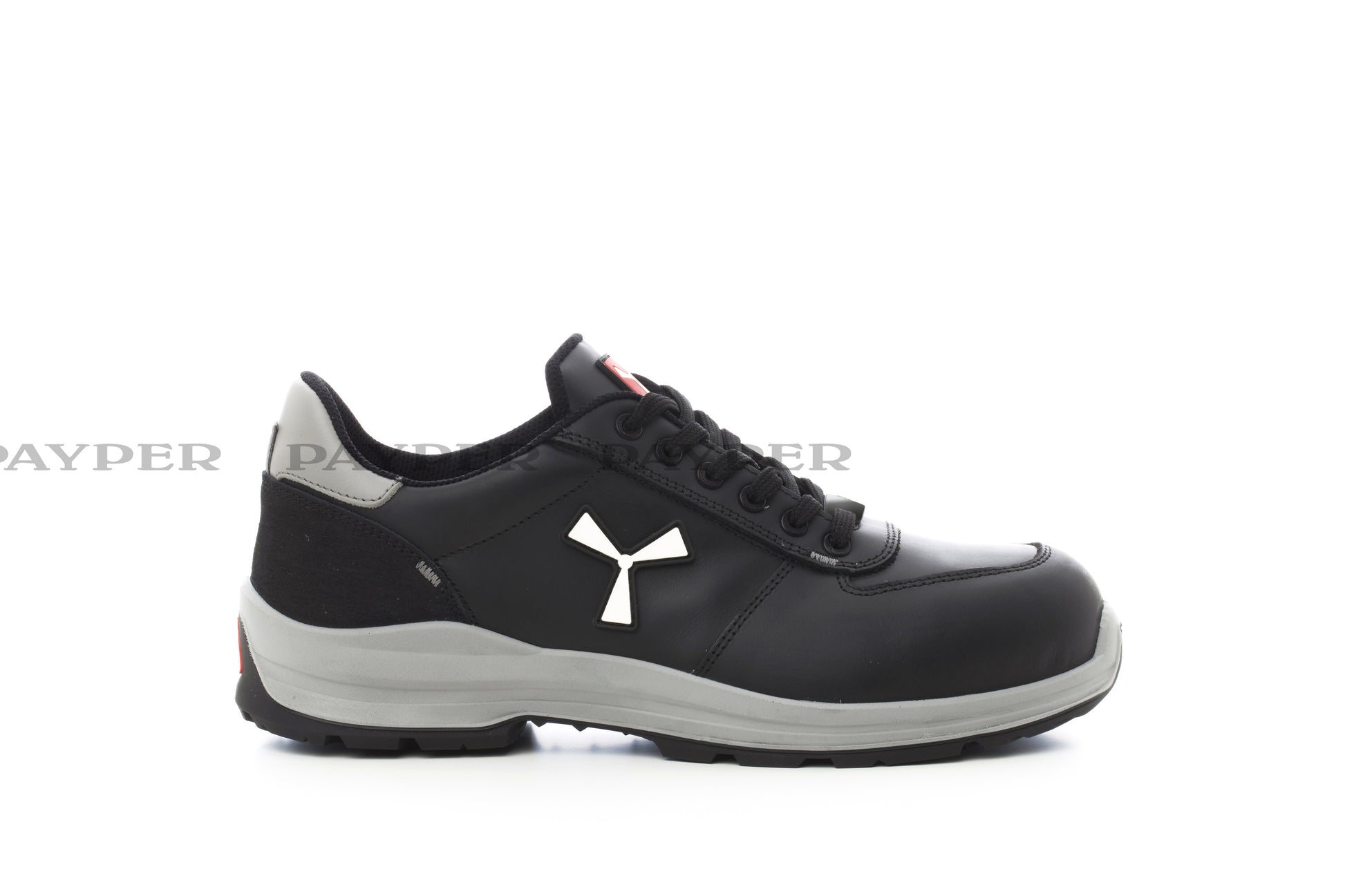 Niedriger Herren-Sicherheitsschuh, Obermaterial aus wasserabweisendem und atmungsaktivem Leder, atmungsaktives und abriebfestes Innenfutter (auf der gesamten Innenfläche), 6+6 metallfreie Ösen, Hinterkappe aus Leder mit Pampasstruktur mit reflektierendem Einsatz, Zehenschutzkappe aus druckgegossenem Aluminium, herausnehmbare Einlage Ortholite X40 016, zertifizierte durchtrittsichere Sohle aus Verbundgewebe, Versteifungselement zum Schutz vor Verdrehungen, hufeisenförmiger Spitzenschutz, Zwischensohle aus federleichtem Polyurethan, Dämpfungssystem MASTER BALANCE aus PU-Polyether von hoher Bruchfestigkeit und ausgewogener Dichte, X-TRAIL-GRIP-Sohle aus TPU mit Fersen- und Zehenschutz.